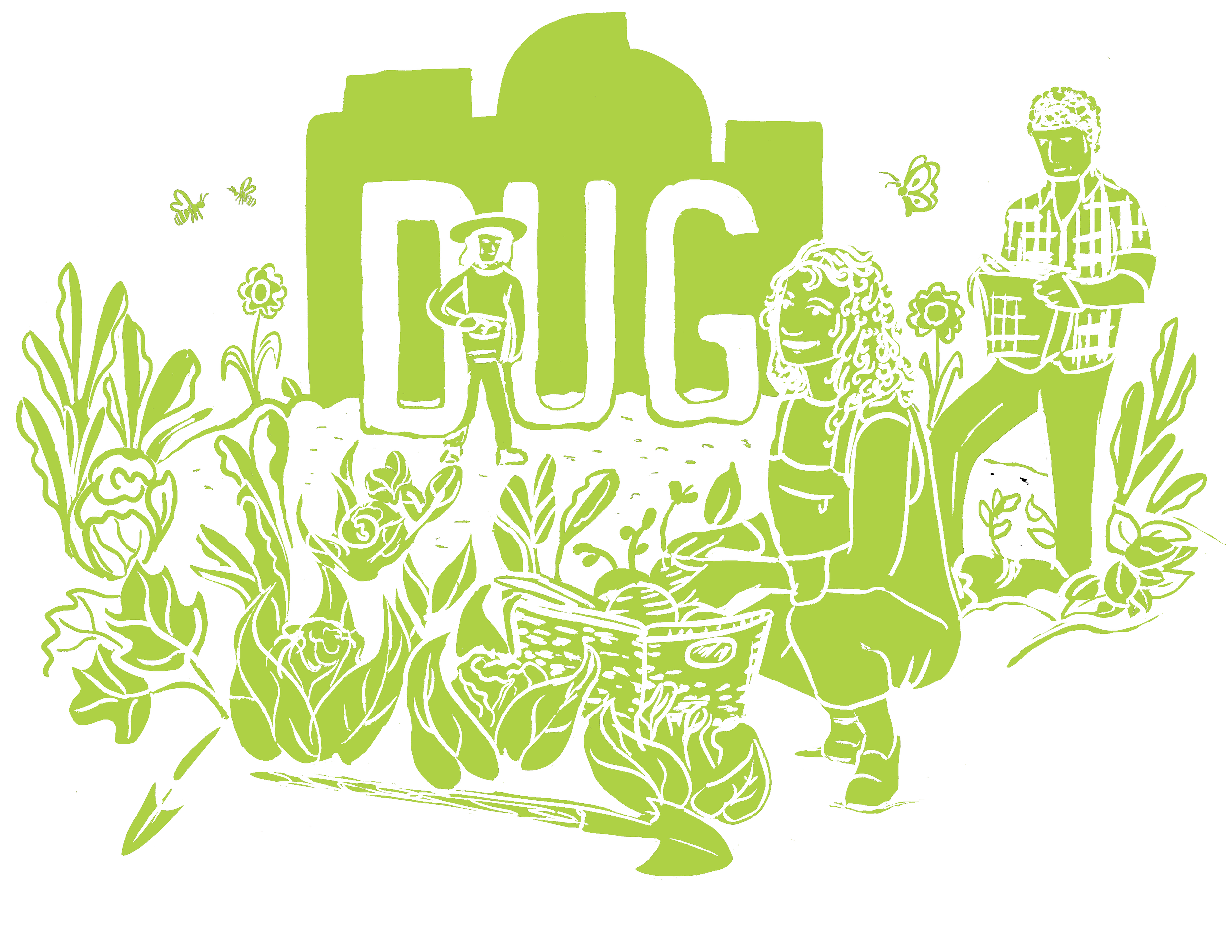 In 2024, I partnered with Denver Urban Gardens (DUG) to create a custom illustration for their staff garments—designing with intention to reflect the organization’s mission of cultivating community through urban agriculture. The final artwork centered on themes of growth, resilience, and local ecosystems, and was screen printed on apparel worn by DUG’s team throughout the season.