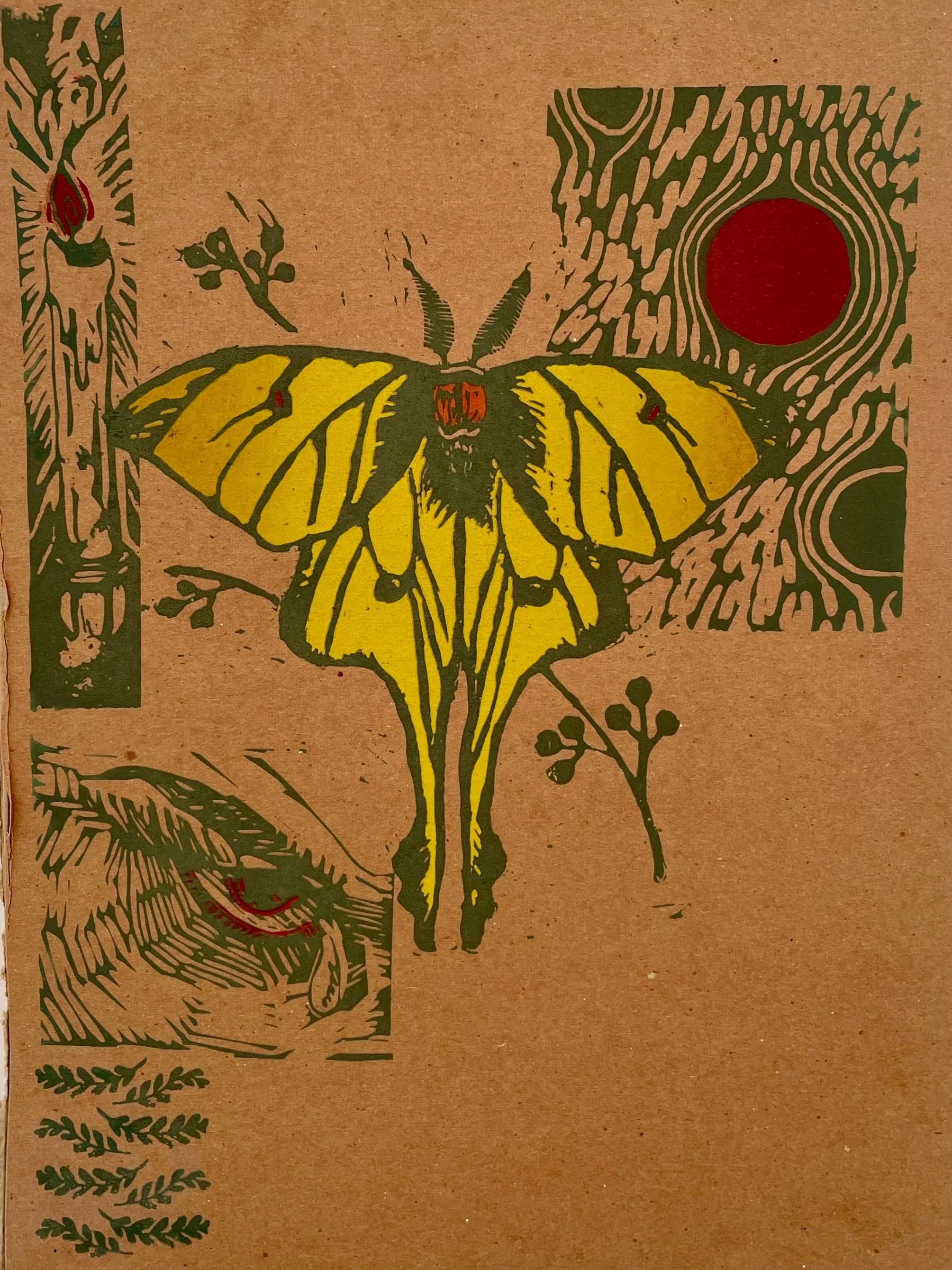 This project began as an exploration of carved linoleum blocks, each piece part of a growing visual language I’d been developing. As I experimented with compositions and color palettes, a narrative started to take shape—one that felt both organic and intentional.